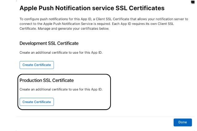 5. Under Production SSL Certificate, click on the "Create Certificate" button.